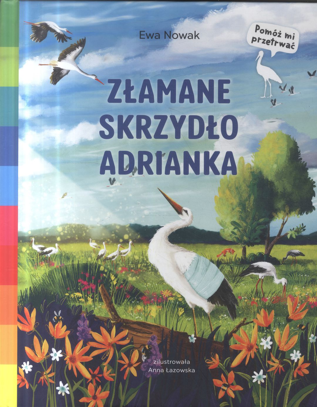 Najmłodszy z całego rodzeństwa, bocianek Adrianek ma pecha. A to oplącze się sznurkiem, a to wypadnie z gniazda i złamie skrzydło. Z opresji zawsze ratuje go zawsze dzielna mała Ewunia, mieszkająca w domu nieopodal gniazda. Czy Adriankowi uda się pokonać przeciwności losu i wyrosnąć na dorodnego bociana? Co my możemy zrobić dla tych pięknych ptaków? Seria „Pomóż mi przetrwać” została stworzona dla dzieci, które chcą mądrze wspierać przyrodę. Książka zawiera planszę edukacyjną oraz sprawdzian wiedzy.